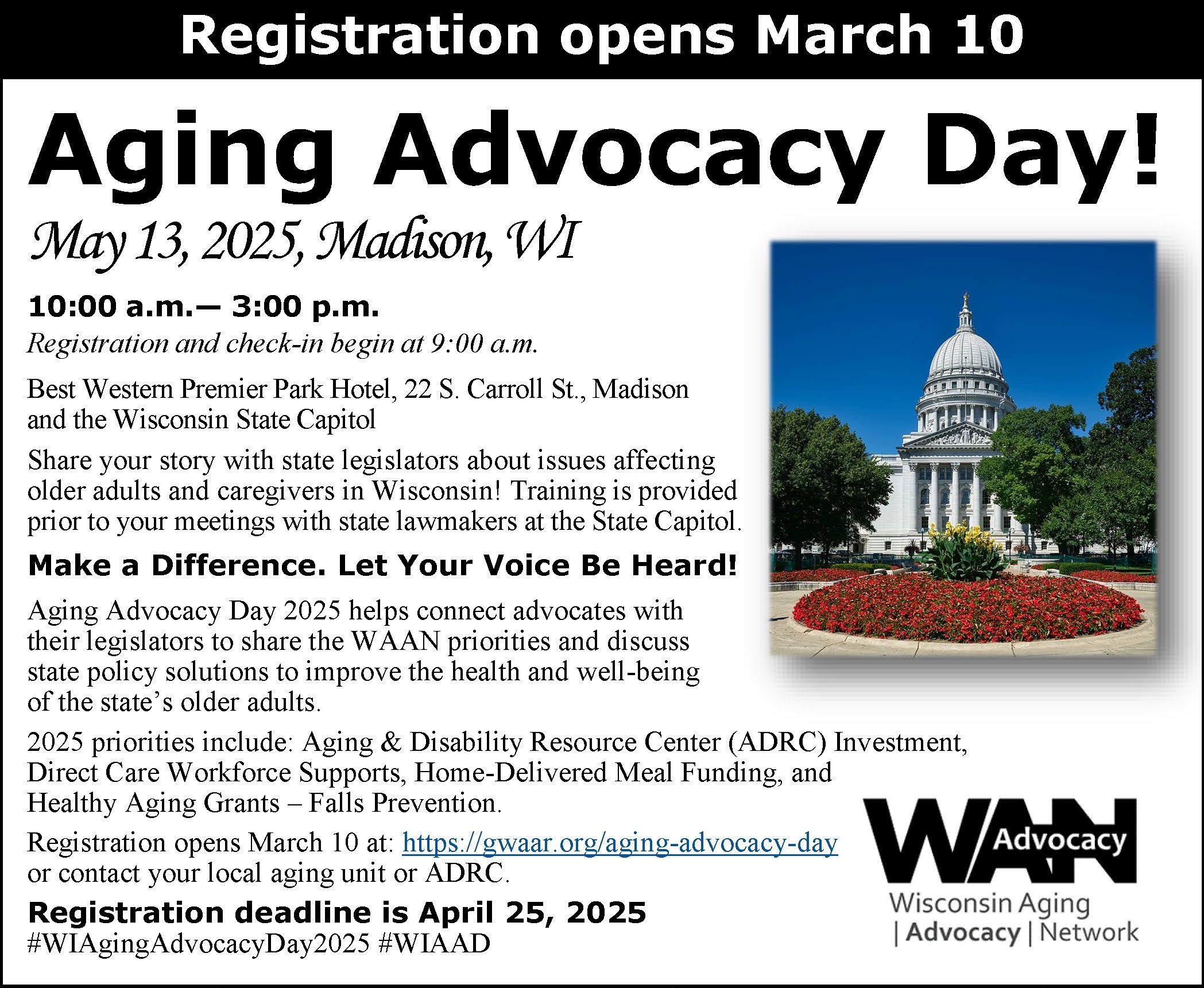 To help attendees prepare for legislative visits, we hosted a virtual information session with a brief overview of this year's issues and talking points. Those unable to attend Aging Advocacy Day in-person are also welcome to attend the virtual training event and are encouraged to contact their state legislators independently or as part of a local, in-district meeting.